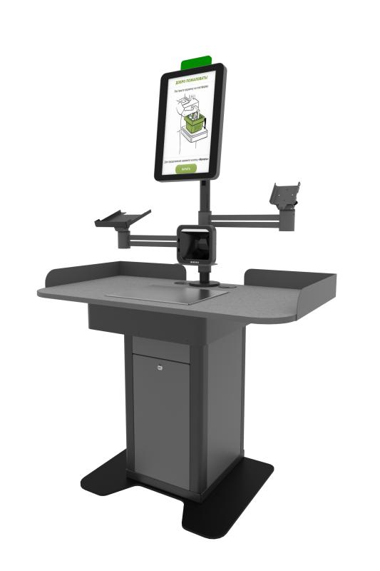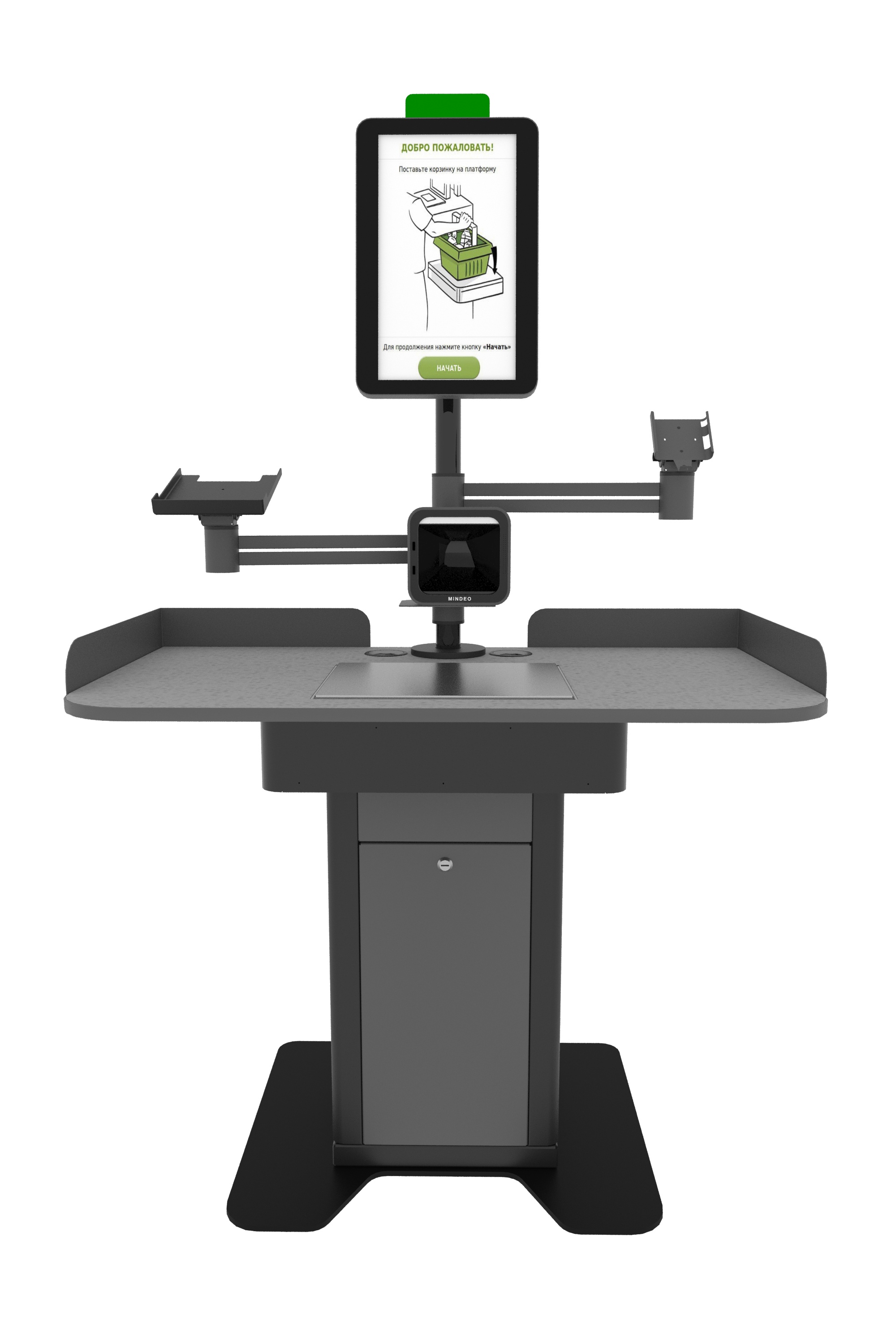 Касса самообслуживания MС ErgoS 15 T (15.6", Full HD, P-CAP, J4125, RAM 8Gb / SSD 128Gb, сканер 2D Mindeo MP8610, тумба, без ккт, без терминала оплаты, без весов, стойка + комплект кронштейнов)