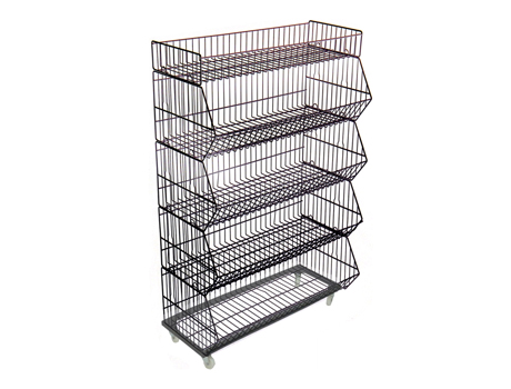 Сетчатый многоярусный стеллаж 5 корзин L=600 на колесах