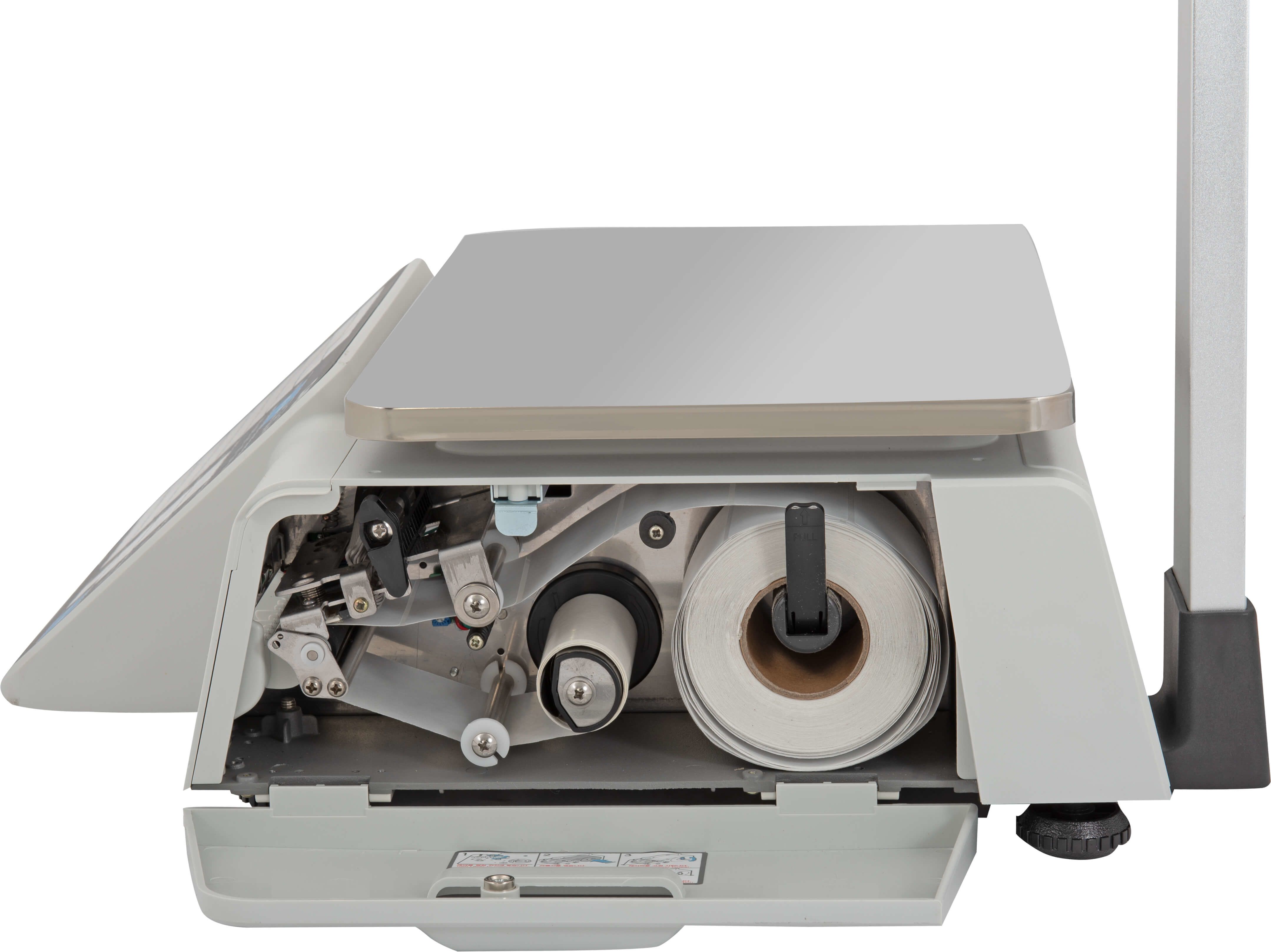 CAS CL3000J-P – весы с печатью этикеток с дисплеем на вертикальной стойке, модифицированная версия весов CL3000-P с аналогичными характеристиками. Также как и CL3000P соответствует всем требованиям супермаркетов. Наличие большой памяти для товаров (10000 PLU), клавиши быстрого вызова товаров, вместительная этикетка до 120 мм с отдельным полем для состава (2100 символов), возможность использовать любой из 10 типов штрихкодов с произвольным составом, возможность настраивать этикетку под свои требования расположения информационных блоков и дизайна и пр.